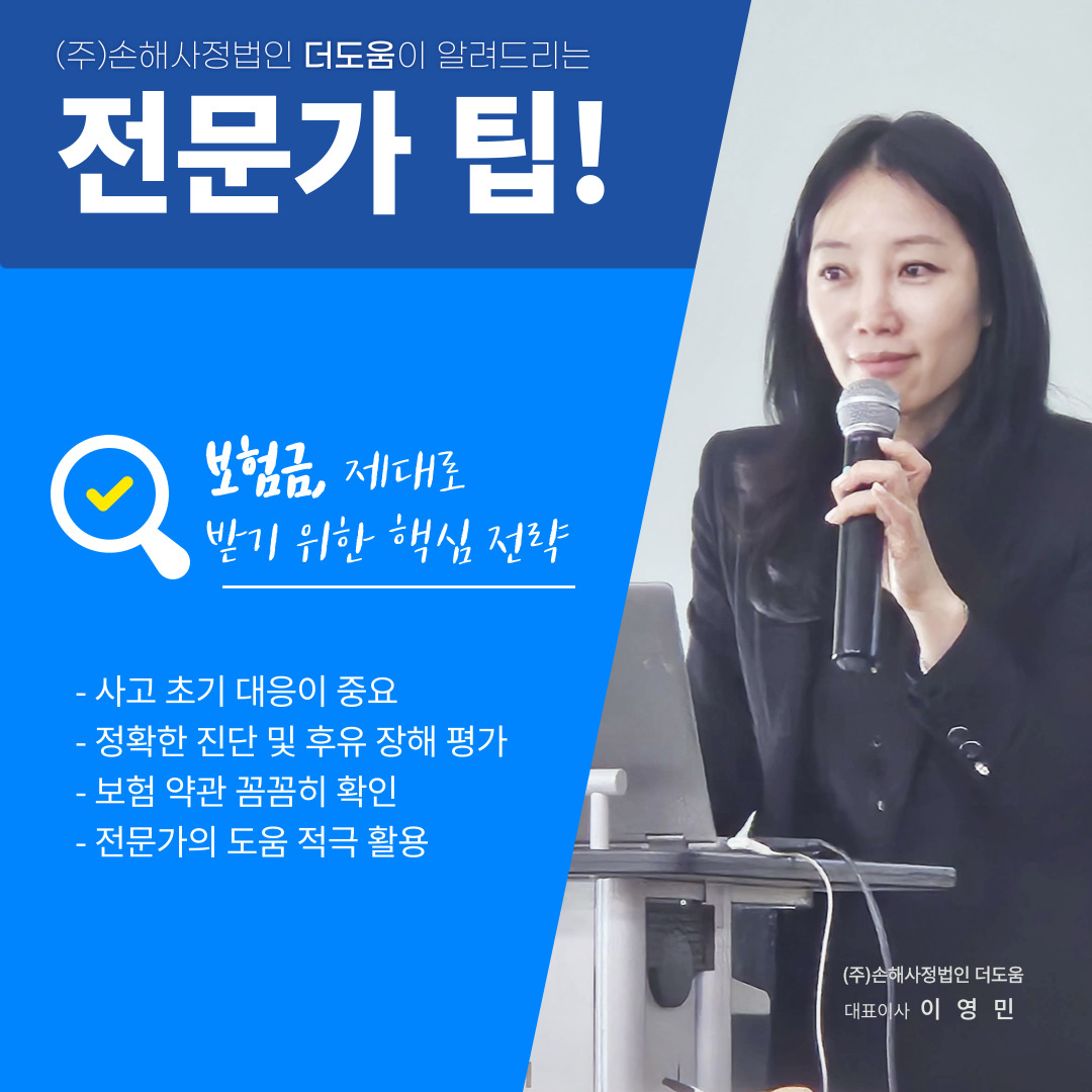 전문가의 도움 적극 활용: 신체손해사정사등 전문가의 도움을 받아 정확한 보상과 올바른 권리 행사